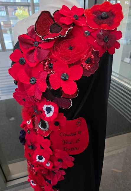 Year 10 Fashion and Textile students are highlighting a range of skills and techniques through this Remembrance Day display.